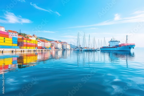 Fototapeta premium Vibrant Colorful Houses and Charming Boats Lining the Picturesque Harbor of...