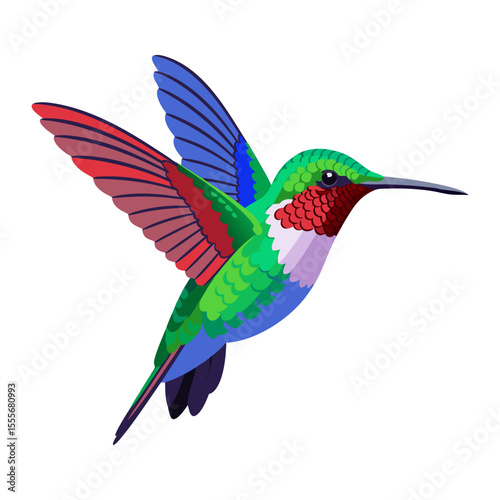 © MD. MAHRUF ZAMAN, Obraz premium Vibrant Colorful Hummingbird in Flight Vector Illustration - Dazzling Tiny Bird Graphic
