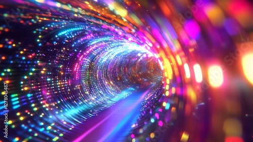 Fototapeta premium Vibrant Colorful Lights Tunnel Abstract Digital Art