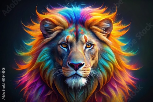 Naklejka premium Vibrant Colorful Lion Head Long Exposure Abstract Art