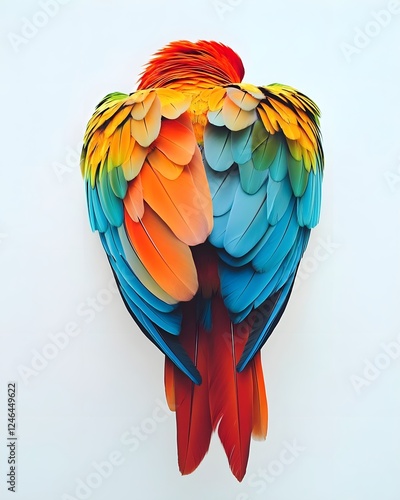 Fototapeta premium Vibrant, colorful parrot feathers arranged artistically against a plain...