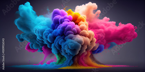 Fototapeta premium Vibrant Colorful Smoke and Powder Explosion in Mid-Air
