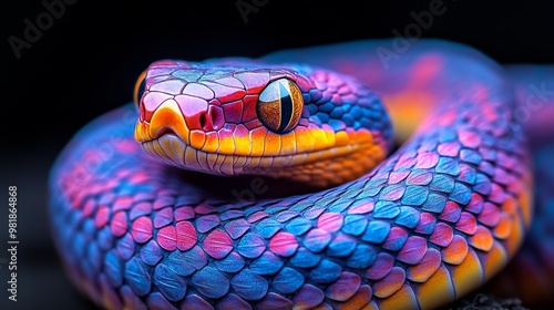 © Tatiana Vagizova, Fototapeta premium Vibrant Colorful Snake Close-Up Generative AI
