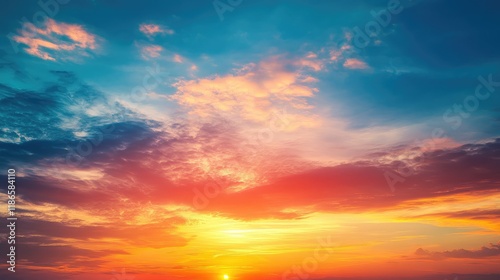 Fototapeta premium Vibrant Colorful Summer Sunset Over Ocean Sky with Dramatic Cloud Formation