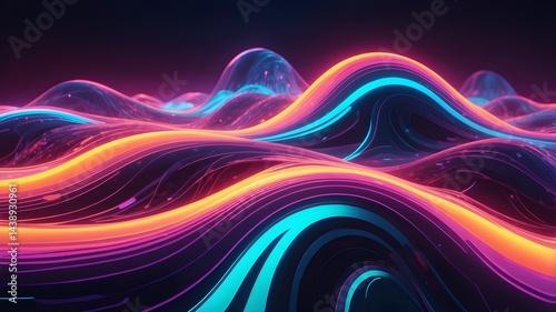 Naklejka premium Vibrant colorful wave forms creating dynamic futuristic motion, abstract 3D...