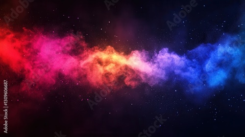 © Anat art, Naklejka premium Vibrant colors and light beams emerge from darkness in an abstract cosmic landscape Generative AI