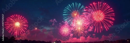 Fototapeta premium Vibrant colors exploding in the sky with fireworks bursting into various...
