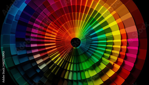 © Stockgiu, Obraz premium Vibrant colors illuminate the dark backdrop with abstract geometric shapes generated by AI