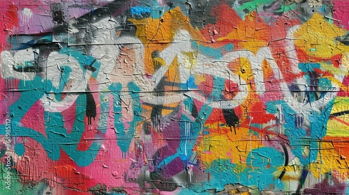 Fototapeta premium Vibrant Colors in Seamless Graffiti Pattern on Aged Concrete Wall