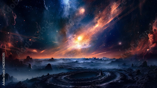 Fototapeta premium Vibrant Colors of a Distant Galaxy - Generative AI Artwork