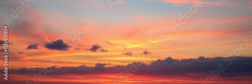 Obraz premium Vibrant colors streak across the sky in a mesmerizing sunset display, tranquil, celestial