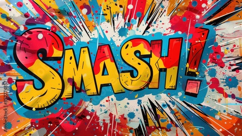 Obraz premium Vibrant Comic Style Pop Art Explosion with 'SMASH!' Text