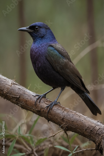 Fototapeta premium Vibrant Common Grackle Perched on a Branch