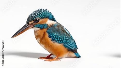 © Kecik, Obraz premium Vibrant Common Kingfisher Bird with Blue and Orange Plumage on White Background.