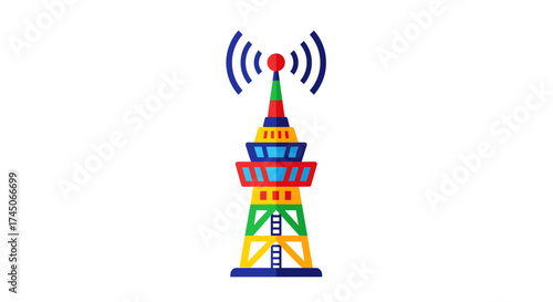 Obraz premium Vibrant Communication Tower with Antenna Waves.
