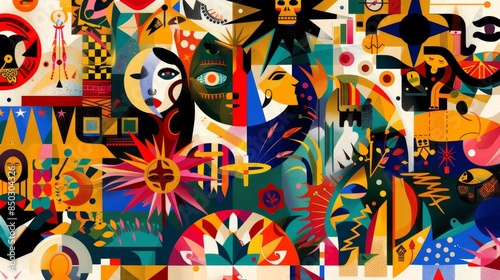 © javier, Obraz premium Vibrant composition of Hispanic identity with cultural symbols background