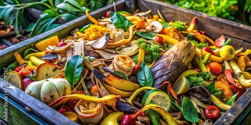 Fototapeta premium Vibrant Compost Bin: Organic Waste Up Close