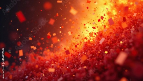 Fototapeta premium Vibrant confetti explodes in a fiery orange and red heat wave effect ,...