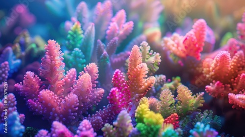 Fototapeta premium Vibrant Coral Cluster Close-Up in Surreal Underwater Seascape