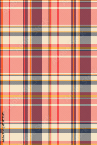 © SolaruS, Obraz premium Vibrant coral, cream, and burgundy plaid pattern. Perfect for textile designs, website backgrounds, or crafting projects.