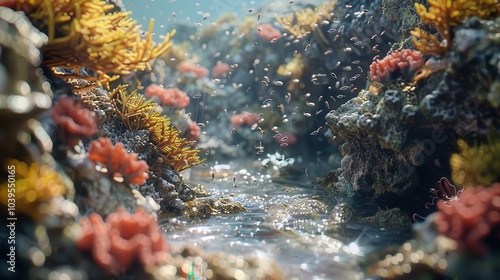 © AssanAI.Studio, Fototapeta premium Vibrant Coral Formations in Calm Shallow Waters