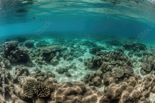 © The 2R Artificiality, Naklejka premium vibrant coral reef ecosystem in the deep blue ocean. Generative AI