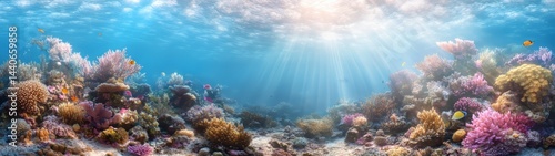 © Ayou.Y, Fototapeta premium Vibrant coral reef exploration underwater world hdr 360 degree marine environment aerial view