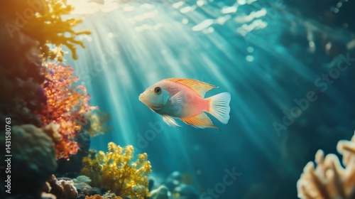 Fototapeta premium Vibrant coral reef fish in sunlit underwater scene (1)