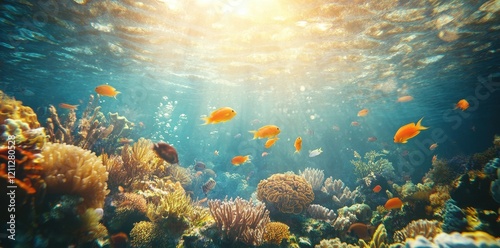 © RizArt, Obraz premium Vibrant Coral Reef Scene With Colorful Fish Swimming