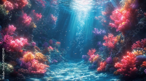 Fototapeta premium Vibrant coral reef, sunlit ocean depths.