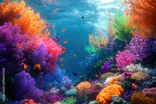 Fototapeta premium Vibrant coral reef teeming with colorful fish and diverse marine life, a...