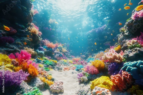 Fototapeta premium Vibrant coral reef teeming with colorful fish and diverse marine life under...