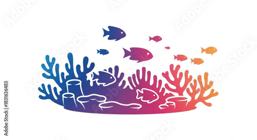 Obraz premium Vibrant coral reef teeming with colorful fish swimming gracefully underwater