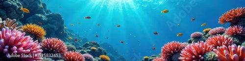 Fototapeta premium Vibrant coral reef teeming with diverse, colorful fish , vibrant, blue, tropical