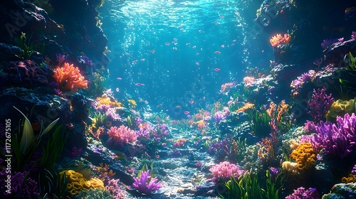 © Anusa, Naklejka premium Vibrant coral reef teeming with diverse marine life in the underwater world