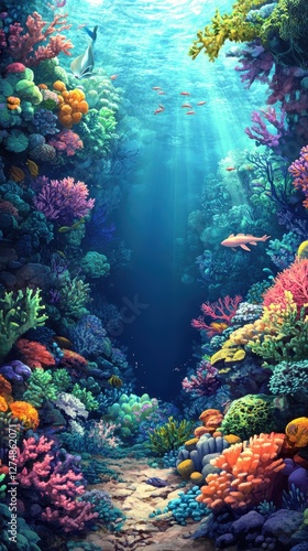 Naklejka premium Vibrant coral reef teeming with life under the sea