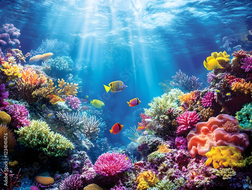 © Devender Stock Image, Fototapeta premium Vibrant coral reef teeming with marine life and showcasing the beauty of underwater ecosystems