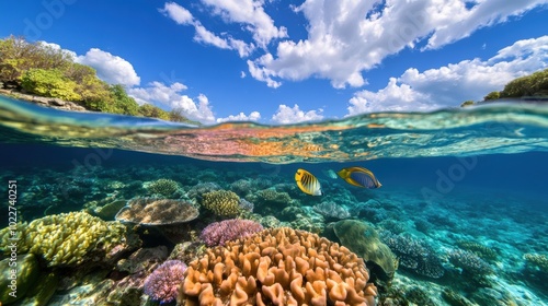 Fototapeta premium Vibrant Coral Reef Under Clear Blue Water