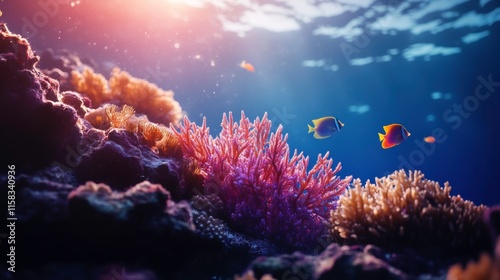 Fototapeta premium Vibrant Coral Reef Under Clear Water Light
