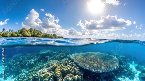 Fototapeta premium Vibrant Coral Reef Under Crystal Blue Ocean Waters