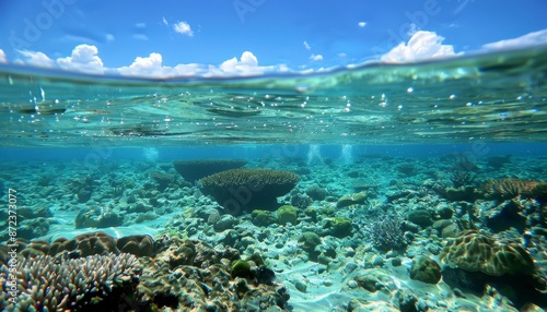Fototapeta premium Vibrant Coral Reef Under Crystal Clear Ocean Waters