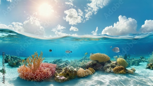 Naklejka premium Vibrant Coral Reef Under Crystal Clear Water