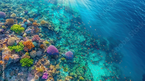 © fourtakig, Naklejka premium Vibrant Coral Reef Underwater Exploration