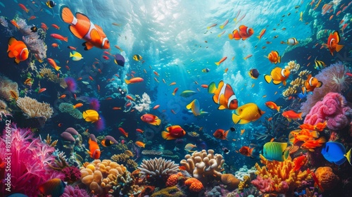 Fototapeta premium Vibrant Coral Reef Underwater Scene