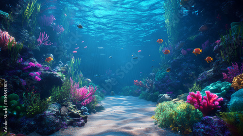 Fototapeta premium Vibrant Coral Reef Underwater Scene: 3D Rendering Background