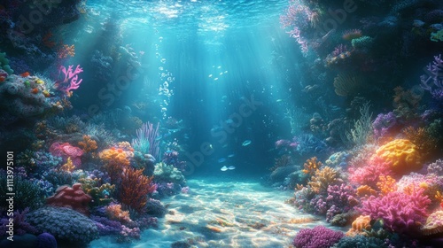 Fototapeta premium Vibrant Coral Reef Underwater Scene With Fish