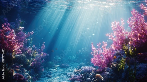 Fototapeta premium Vibrant Coral Reef Underwater Scene with Sunlight Beams