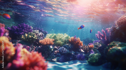 Naklejka premium Vibrant Coral Reef Underwater With Colorful Fish