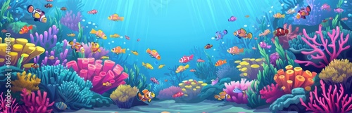 © chesleatsz, Obraz premium Vibrant Coral Reef with Colorful Fish. A Beautiful Underwater Scene