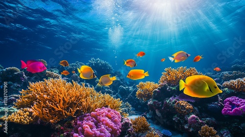 Naklejka premium Vibrant Coral Reef With Colorful Fish Swimming
